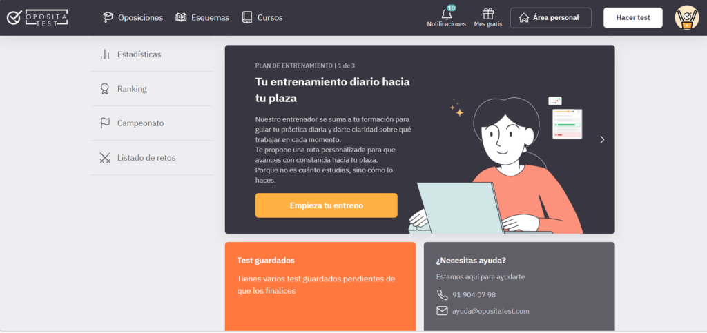 Ahora que ya sabéis todo lo que os aportará el entrenador personal, es el momento de empezar a usarlo y ganar ventaja. Para hacerlo, debéis tener una suscripción activa en la web de OpositaTest. Cuando os hayáis suscrito, solo tenéis que entrar en vuestra Área Personal y seleccionar el entrenador personal. Por el momento solo está disponible en la web. Pronto lo estará en la aplicación móvil.