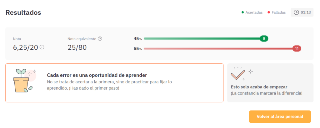 Con esta evolución, OpositaTest se convierte en una plataforma activa, ya que ahora no solo os permite practicar, sino que también os indica qué debéis hacer para mejorar en vuestra preparación.